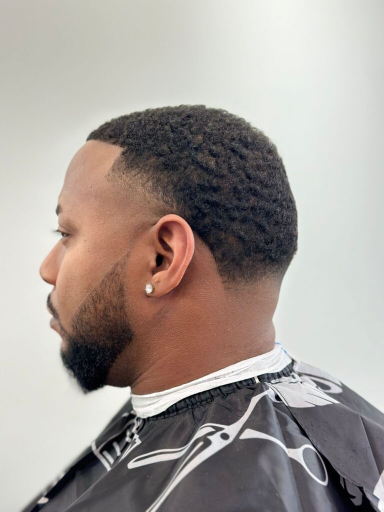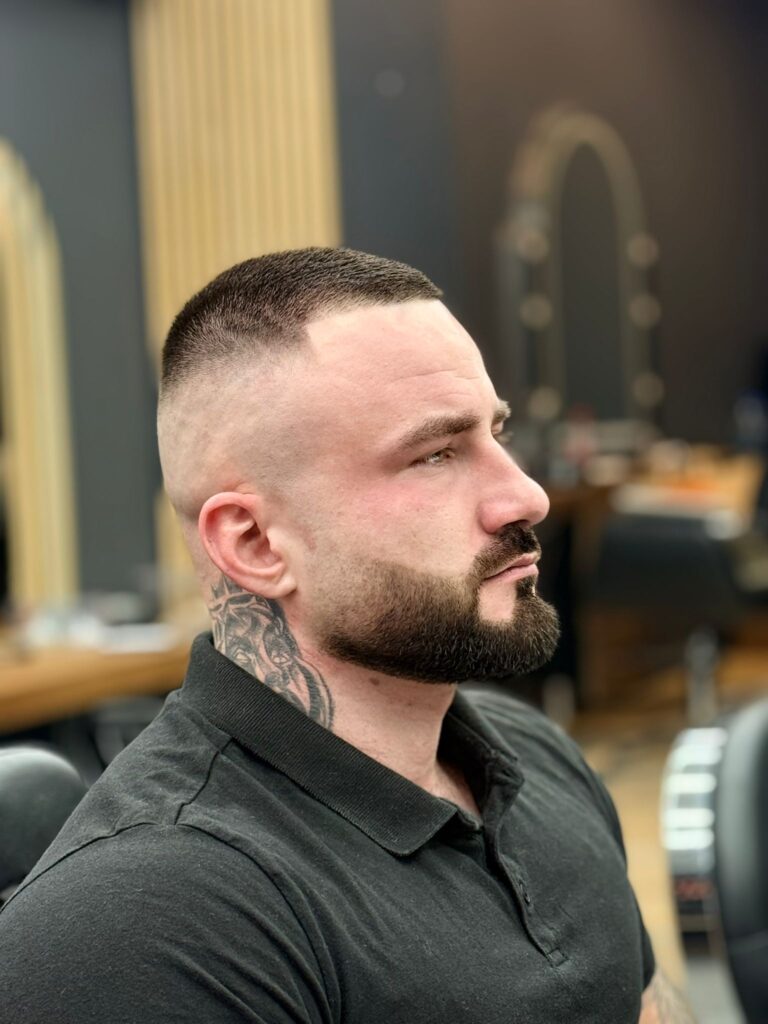 Precyzyjny skin fade w Rzeszowie z idealnym przejściem i czystym wykończeniem, wykonywany przez doświadczonego barbera.